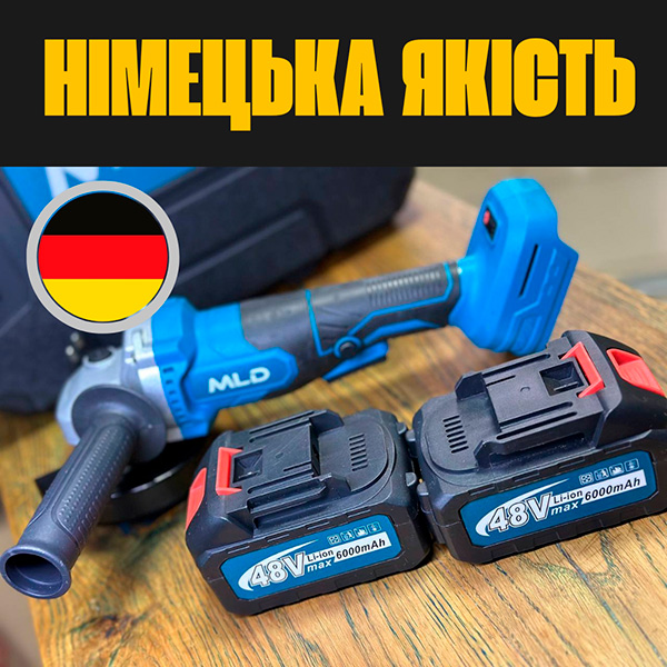 Потужна та зручна у використанні акумуляторна болгарка MLD 48V — це сучасний інструмент для шліфування, різання металу, каменю, бетону, плитки чи дерева. Вона створена для професійних майстрів і домашніх користувачів, яким важлива мобільність, автономність і висока продуктивність.